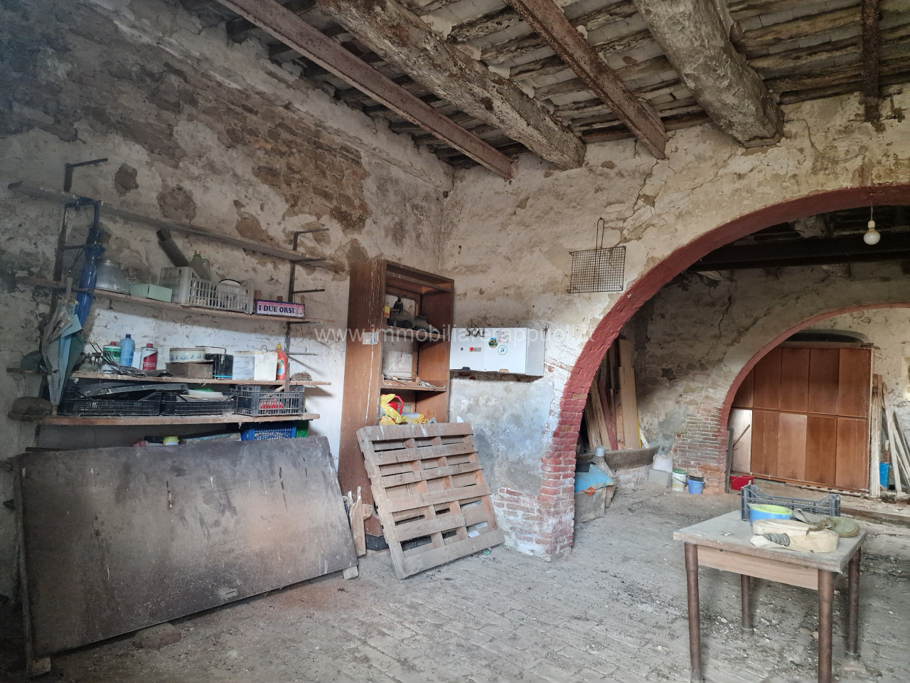 L’immobile necessita di una completa ristrutturazione ma conserva intatto tutto il fascino autentico dei poderi toscani: muri spessi in pietra locale, coperture originali con travature lignee a vista, ambientazioni suggestive immerse nel silenzio della campagna. Gli edifici sorgono su oltre 70 ettari di terreno privato – suddivisi tra seminativo (circa 52 ha), bosco (16 ha) e aree accessorie – offrendo privacy assoluta e uno scenario naturale unico.