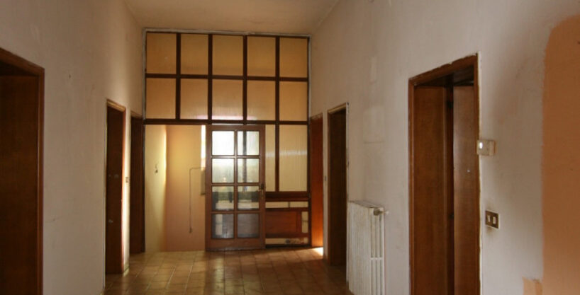 La zona notte è composta da ben sette camere dalle metrature generose – ciascuna dotata di finestra che garantisce luminosità naturale durante tutto il giorno – oltre a due bagni finestrati. I pavimenti sono uniformemente rivestiti in ceramica resistente mentre le pareti chiare consentono massima personalizzazione degli spazi interni. La proprietà dispone inoltre di resede esclusivo esterno dove poter creare un’area relax o giardino privato.
